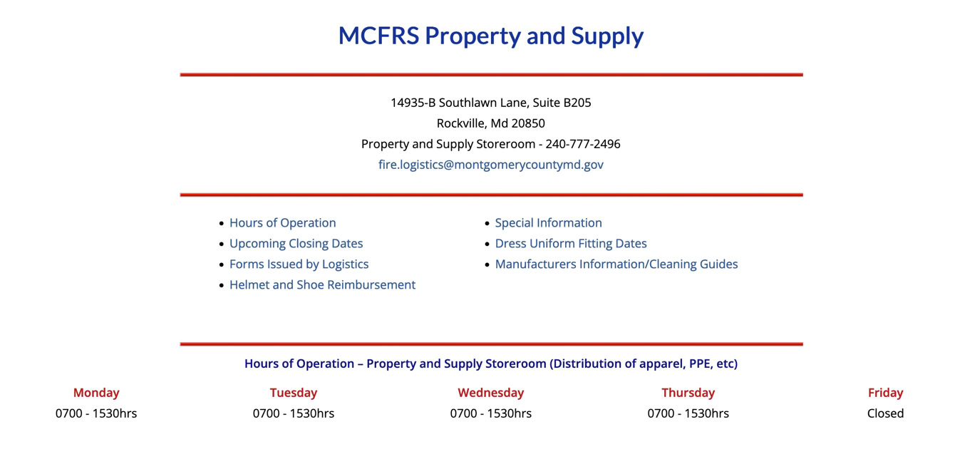 Any retiree who is asking for a replacement item will need to reimburse Montgomery County Fire and Rescue for the actual cost of the item. They may write a check for the amount and the cost may need to be paid upfront.